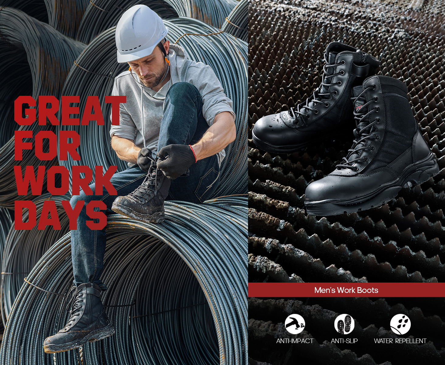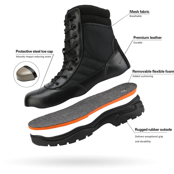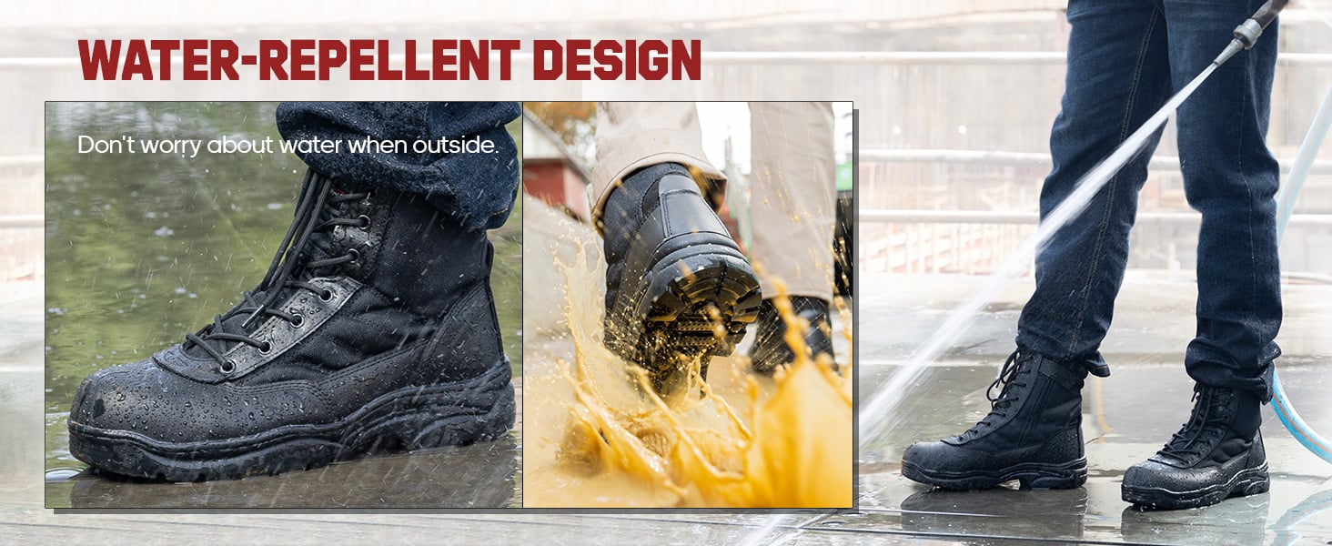 The side zipper and lace-up two closure design for fast on and off. This work boots are designed with ankle support as well as stylish look. They make a perfect gift for your husband, father, boyfriend, co-workers, and more. They are suitable for all seasons.